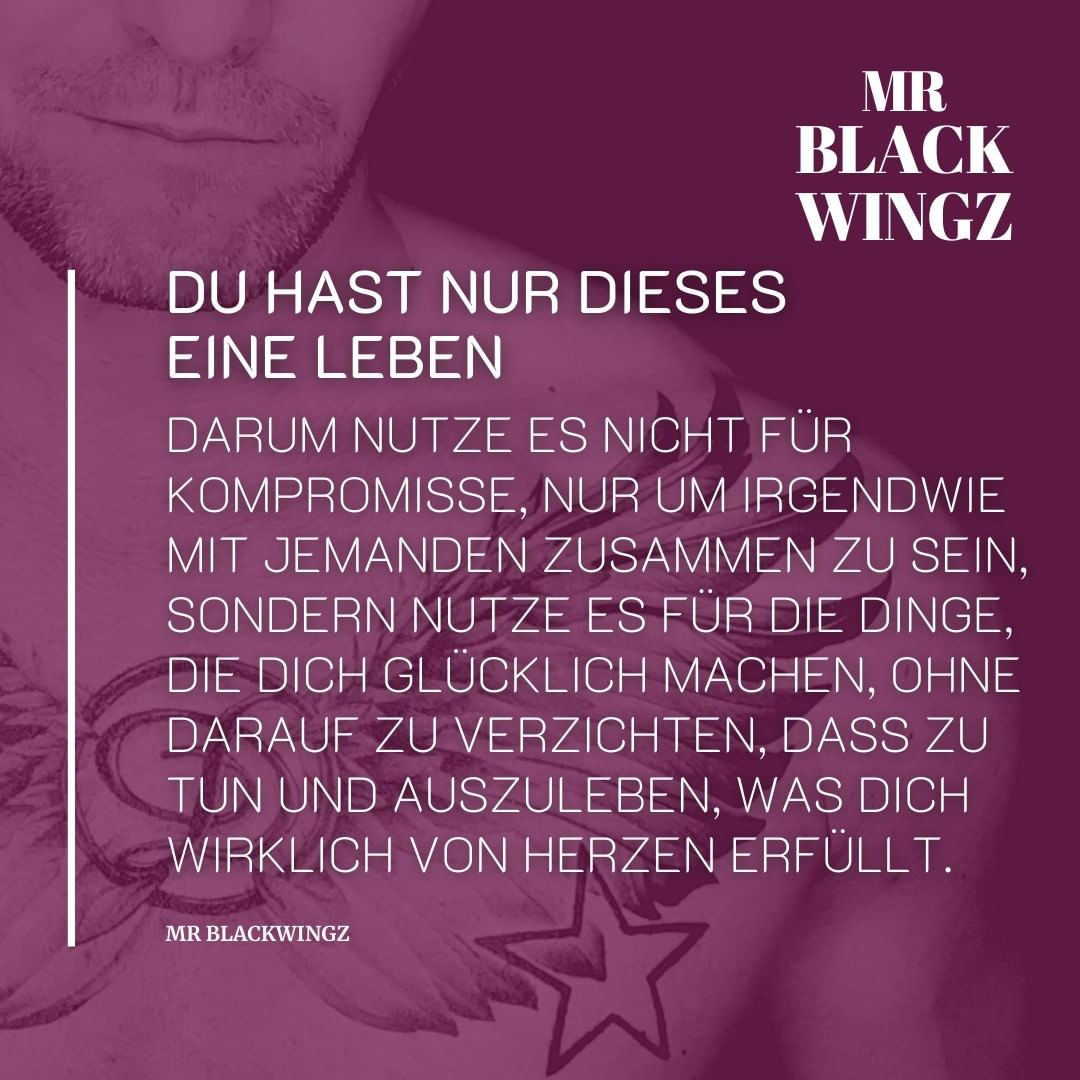 „Du hast nur dieses eine Leben, nutze es nicht für Kompromisse, nur um irgendwie mit jemanden zusammen zu sein, sondern nutze es für die Dinge, die dich glücklich machen, ohne darauf zu verzichten, dass zu tun und auszuleben, was dich wirklich erfüllt.“