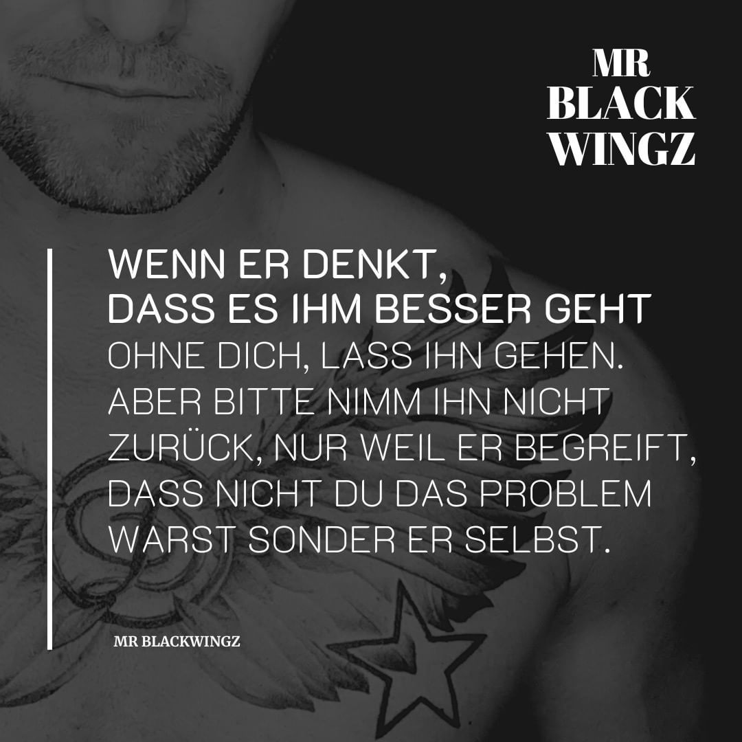 „Wenn er denkt, dass es ihm besser geht ohne Dich, lass ihn gehen. Aber bitte nimm ihn nicht zurück, nur weil er begreift, dass nicht Du das Problem warst, sondern er selbst.“